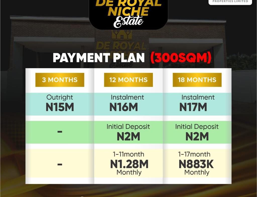 300sqm: N15,000,000 Naira